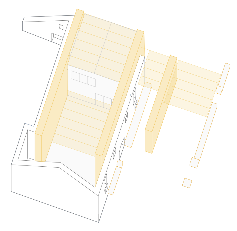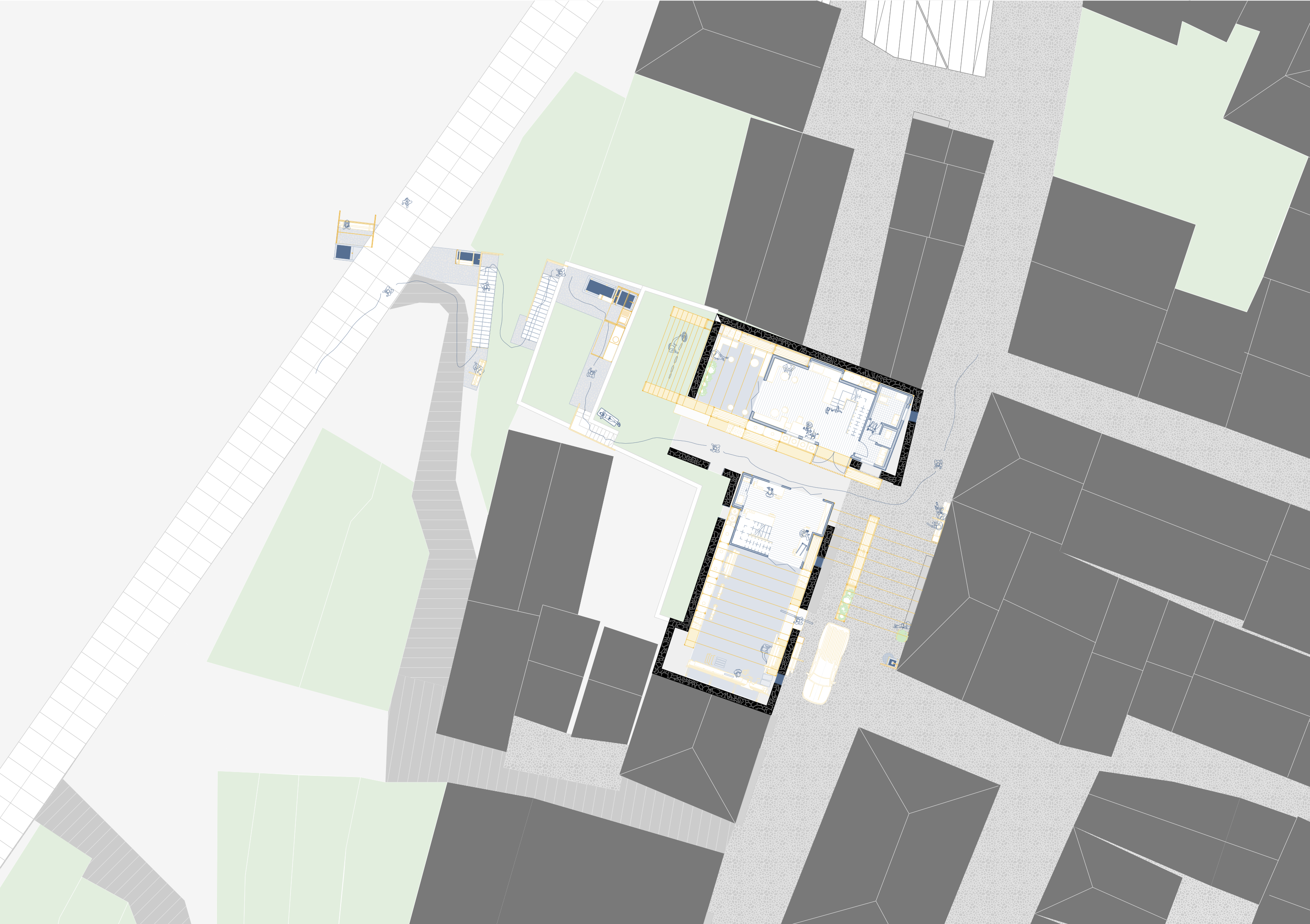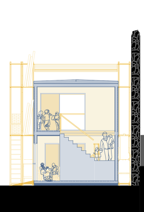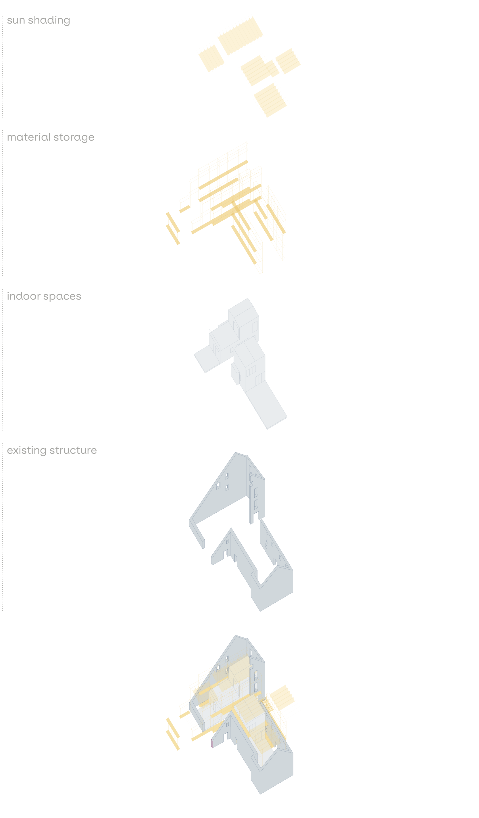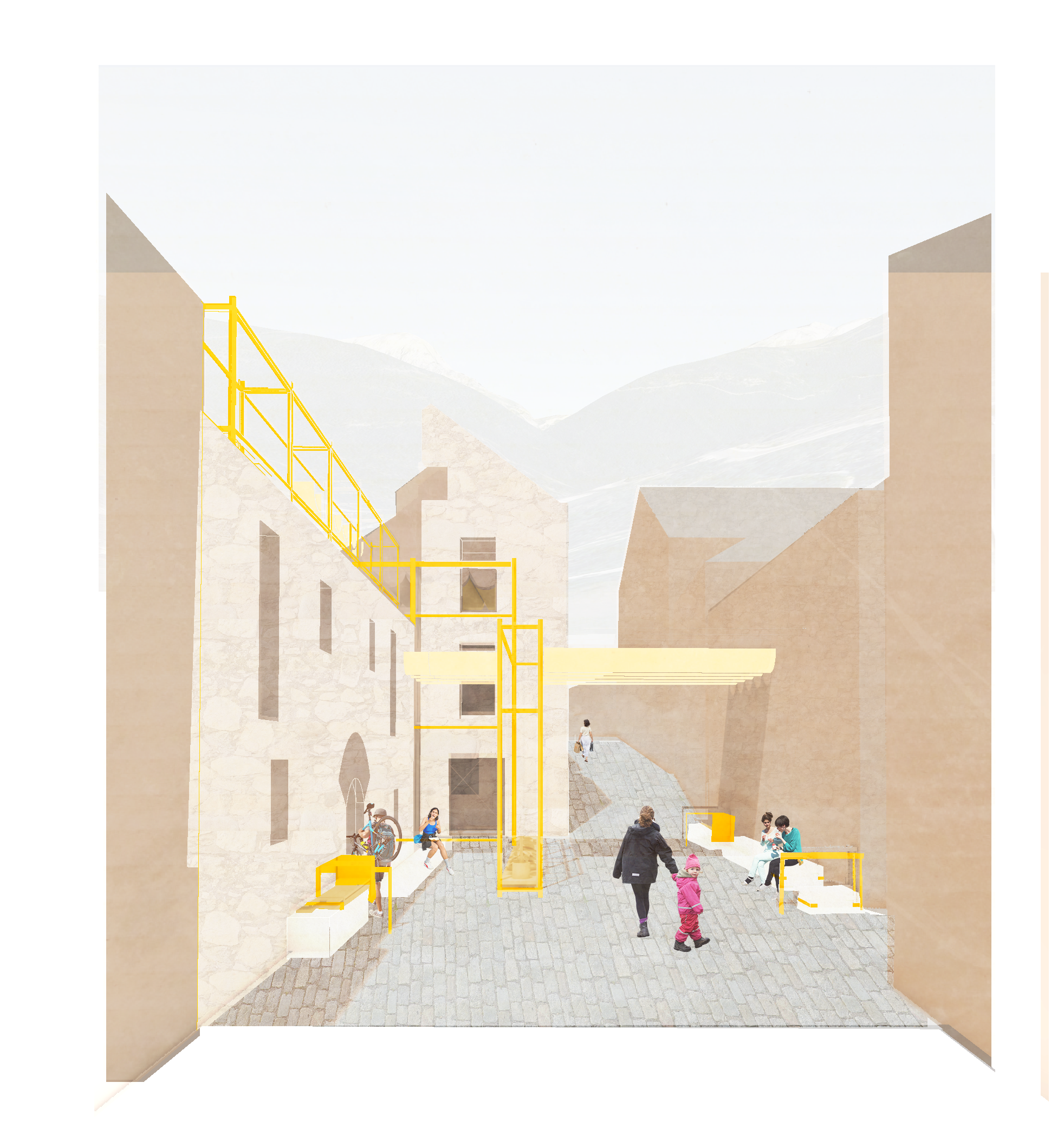 This marginalization of care work prompted research into infrastructure that could reverse this trend, eventually informing my design proposal: a toolbox of 10 interventions aimed at making care work visible and prompting its communalization. They range from practical solutions— such as a fountain to assist with cleaning (#002)—to more abstract ideas, such as a system for water reuse (#008). The proposal also includes an intergenerational day care center (#009) and a repair workshop (#010) that provides indoor space.